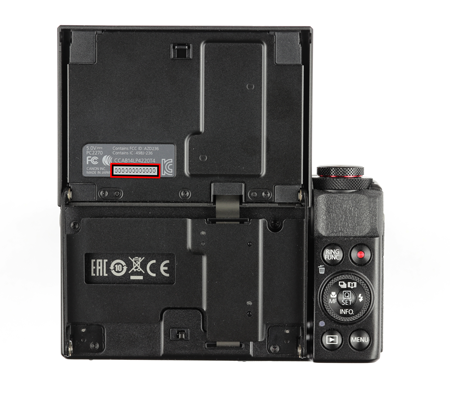 O número de série da câmara PowerShot ou IXUS é geralmente composto por 12 dígitos, no entanto, em alguns modelos mais antigos, o número de série pode ter 9 ou 10 dígitos.